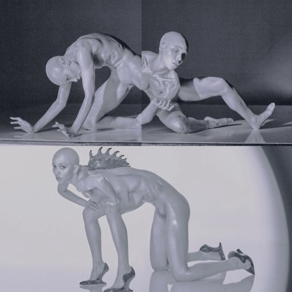 “Touch a Girl” and “Predictable Girl” function almost like reflections in a dim mirror. Both explore intention, want, and the complexities of feminine desire, but they approach from opposite angles, one curious, the other anxious, one bold, the other tentative. Twigs often builds albums around emotional binaries, sacred and profane on MAGDALENE, body and machine on LP1, but here the contrast is subtler. The songs acknowledge the multiplicity of wanting without trying to resolve it.