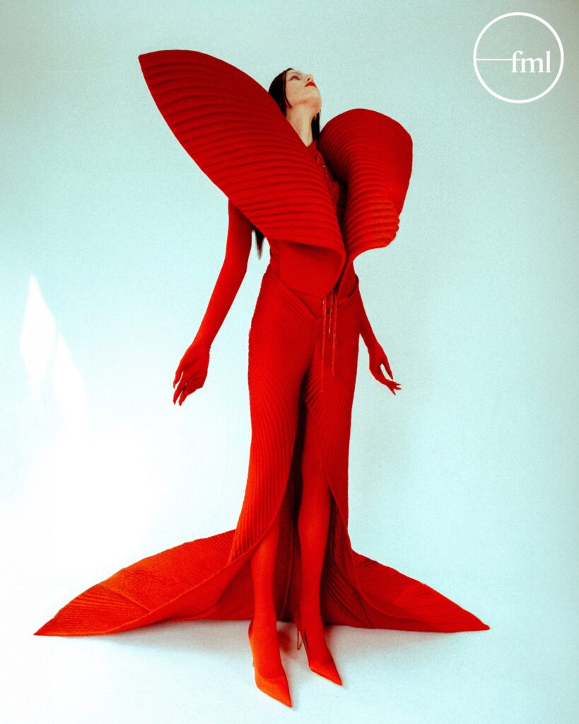 In this exclusive conversation with FML, Kuai Li speaks candidly about material exploration, sculptural experimentation, the emotional messages she hopes women feel when wearing her work, and the challenges of building an international career as a Chinese born designer. The Q&A below appears exactly as she shared it, offering an intimate look at one of fashion’s most forward-thinking creators.