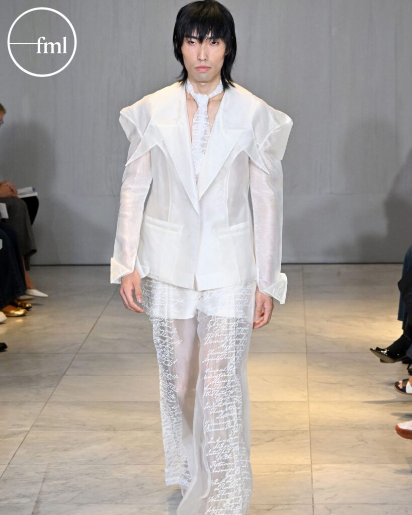 SS: I intentionally create tension by combining structured fabrics and sharp tailoring with soft, translucent materials. Structure, for me, represents protection, presence, and the outer self, while softness allows space for vulnerability and emotion. I am drawn to the coexistence of these opposites because they feel honest and human.