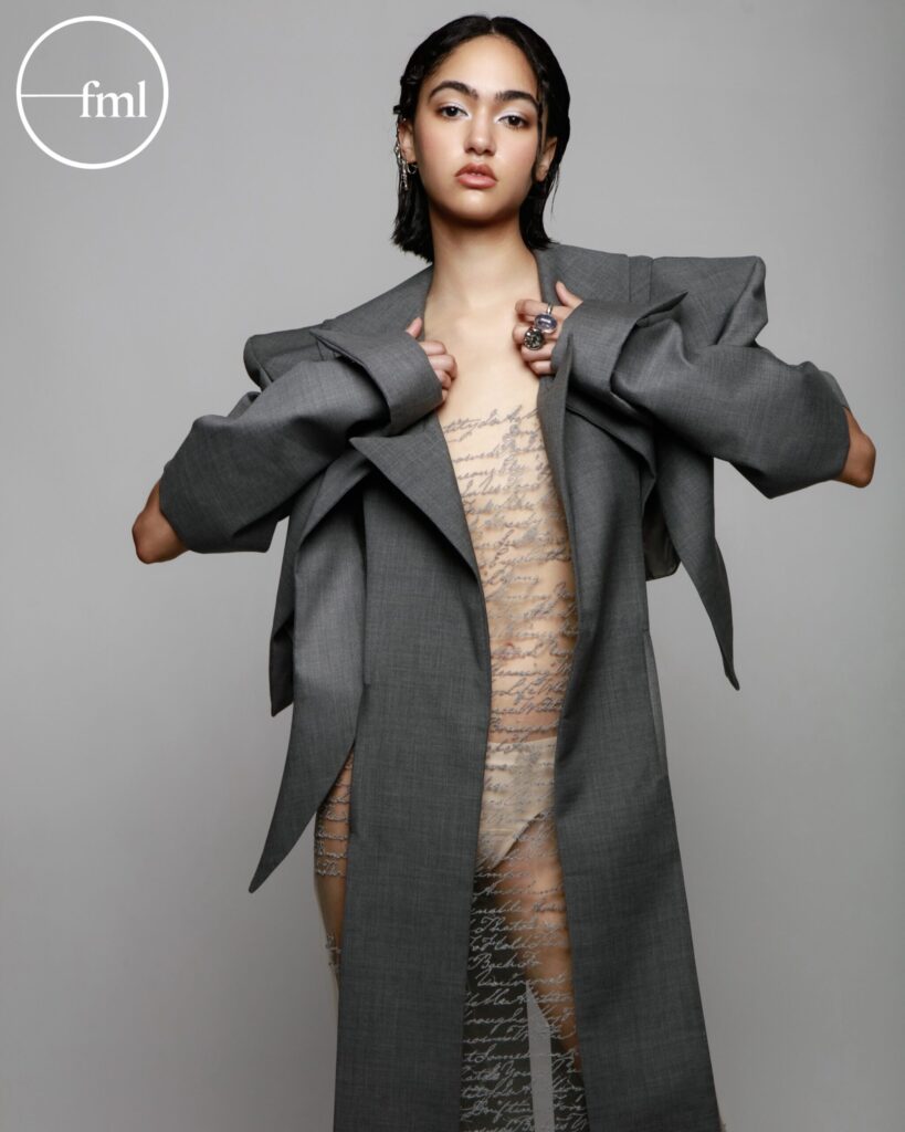 FML: Your work balances strength and softness. How do you intentionally create tension between structure and vulnerability in your collections?